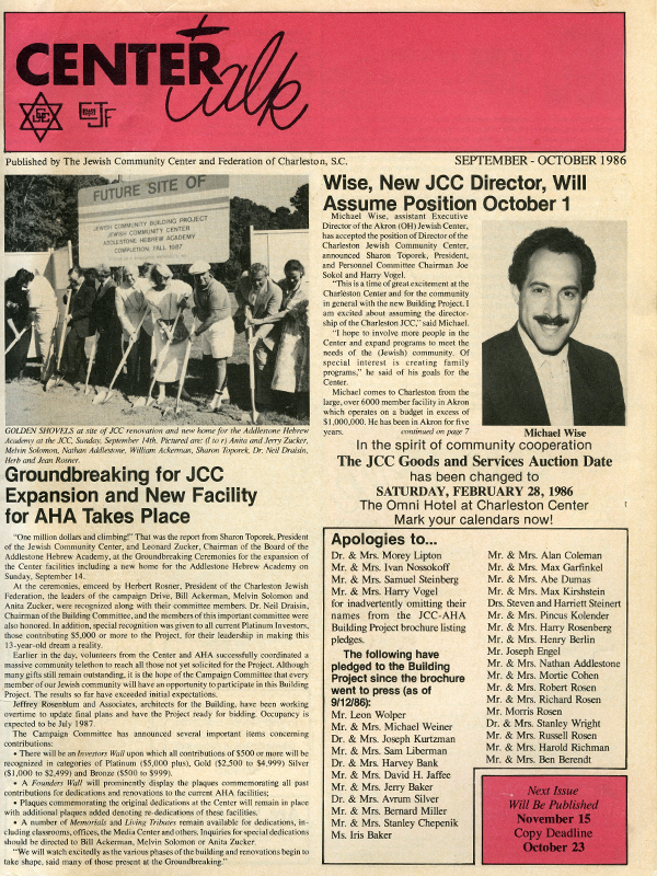 The Jewish Community Center left its West Ashley location in 2015 and became the JCC Without Walls (WOW), which ran Jewish programming in a variety of venues around the city for the next five years. In 2019, the JCC Without Walls ceased programming and became a grant-making agency charged with supporting Jewish projects in the Lowcountry. Beginning in 2020, the JCC’s two signature series, the Jewish Bookfest and Filmfest, were absorbed by the College of Charleston’s Jewish Studies Program.
