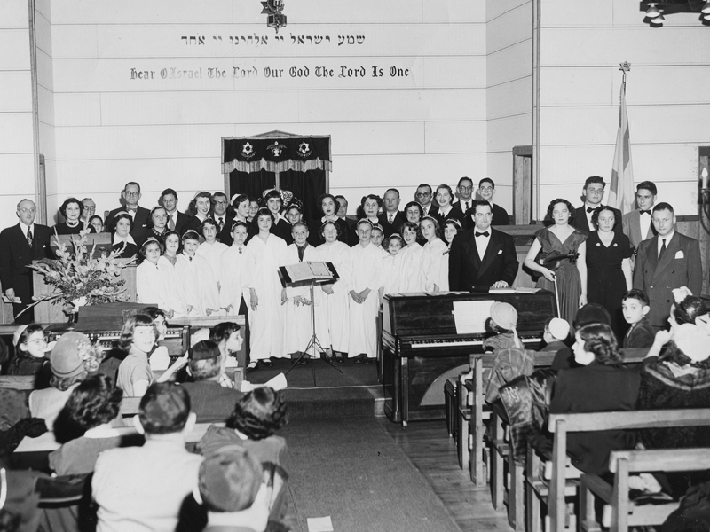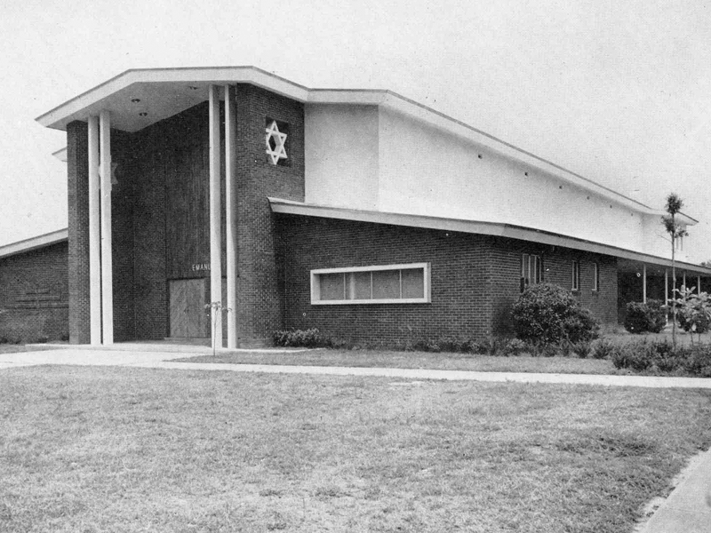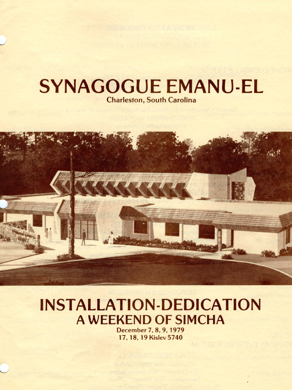 Synagogue Emanu-El, Charleston’s only Conservative Jewish congregation, was founded in 1947 by a group of 73 charter members, most former congregants of Brith Sholom. Friday night services were held initially in a church at Fort Moultrie on Sullivan’s Island. The congregation celebrated its first High Holidays in Charleston at the Jewish Community Center (JCC) on St. Philip Street under the spiritual leadership of Rabbi Lewis A. Weintraub and Cantor Jacob Renzer. By the end of the year, members had rebuilt a former U.S. Army chapel, contributed by the family of Matthew (“Mattie”) Steinberg, on a large lot on Gordon Street, purchased by Macey Kronsberg acting in his capacity as president of Synagogue Emanu-El.